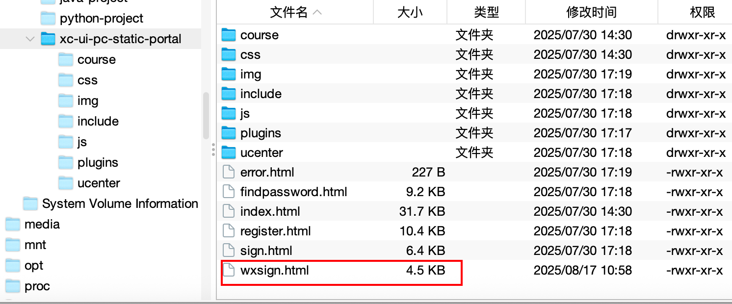 这里是之前上传的前端静态资源,找到目录下的wxsign.html