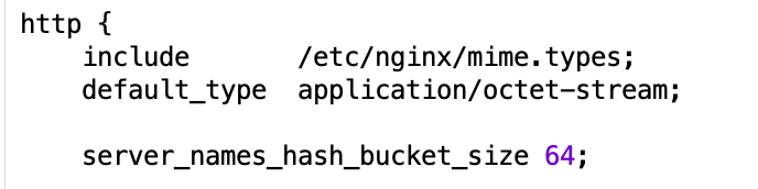 server_names_hash_bucket_size 64;只是为提高/保证server_name哈希表的容量,避免“哈希桶太小”的告警,对匹配结果本身无逻辑影响。
