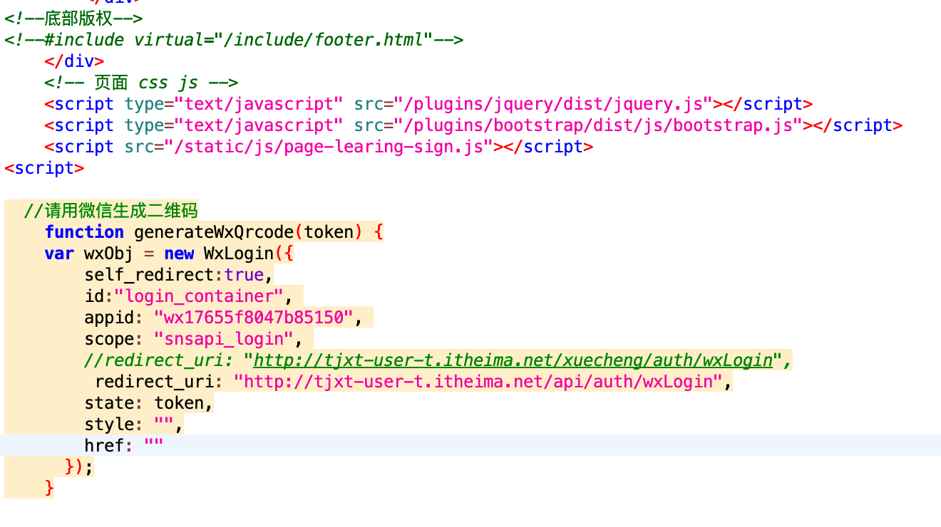 redirect_uri: "http://tjxt-user-t.itheima.net/api/auth/wxLogin",