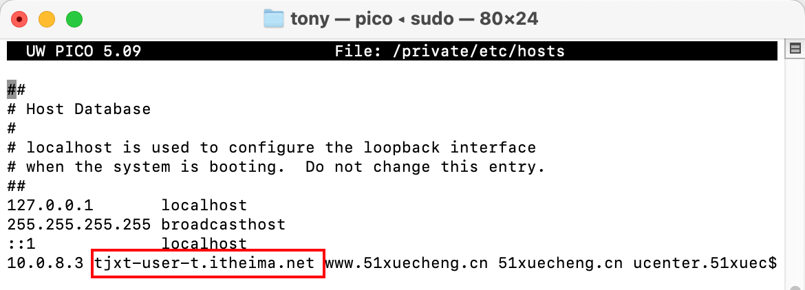 修改hosts文件,配置 tjxt-user-t.itheima.net 如下,一般无需手动刷新,配置完就生效了: